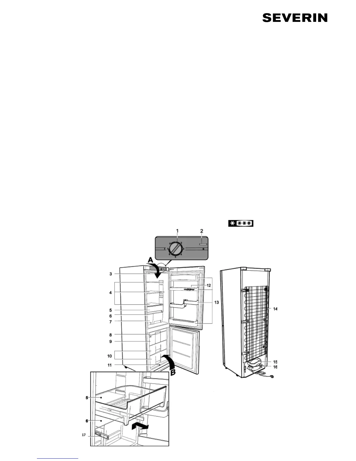 The unit consists of two parts: refrigerator (A) and freezer (B)