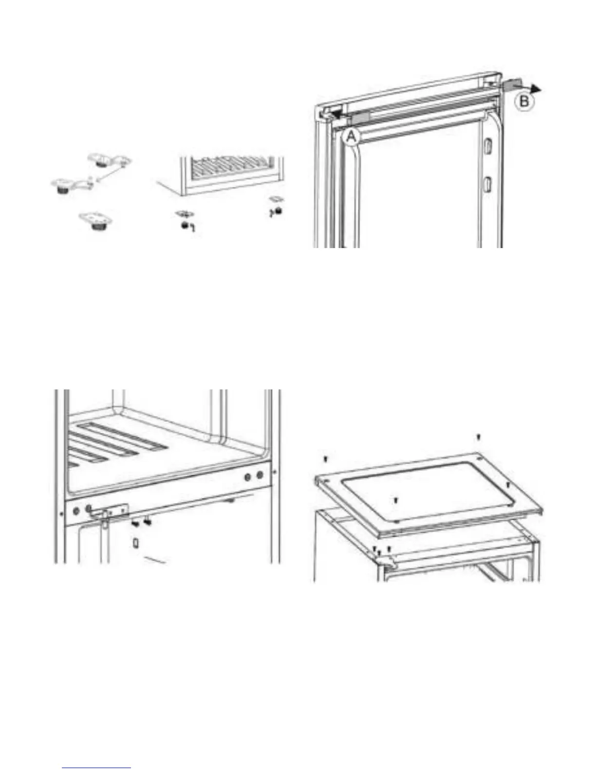 het koelvak (B). Plaats de nieuwe scharnierkap (apart