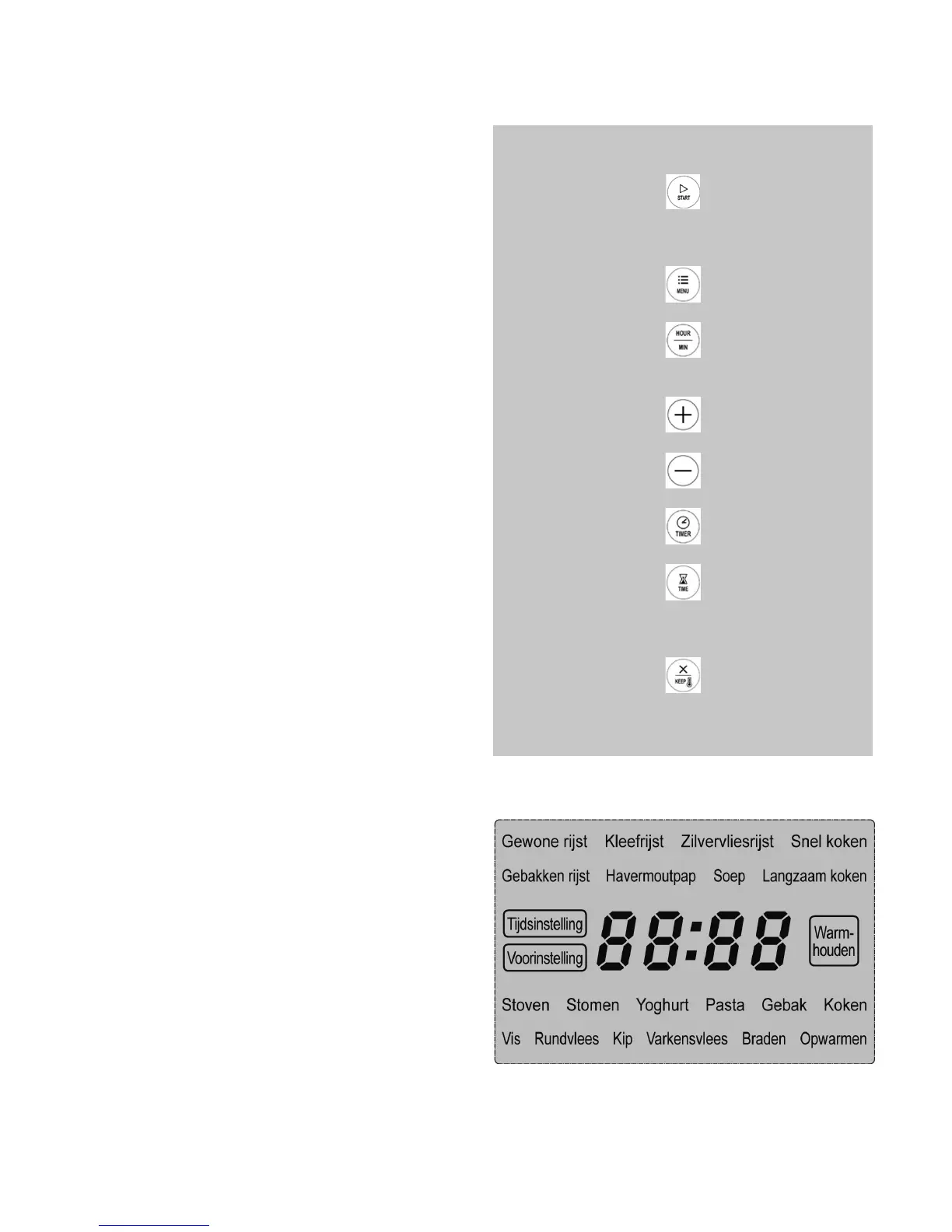(niet beschikbaar voor programma’s rijst koken en snel