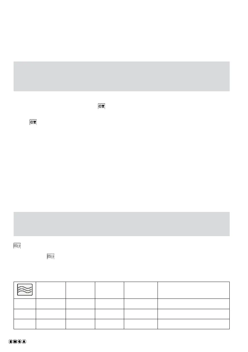 repeatedly until the required power setting is shown (see the table below).