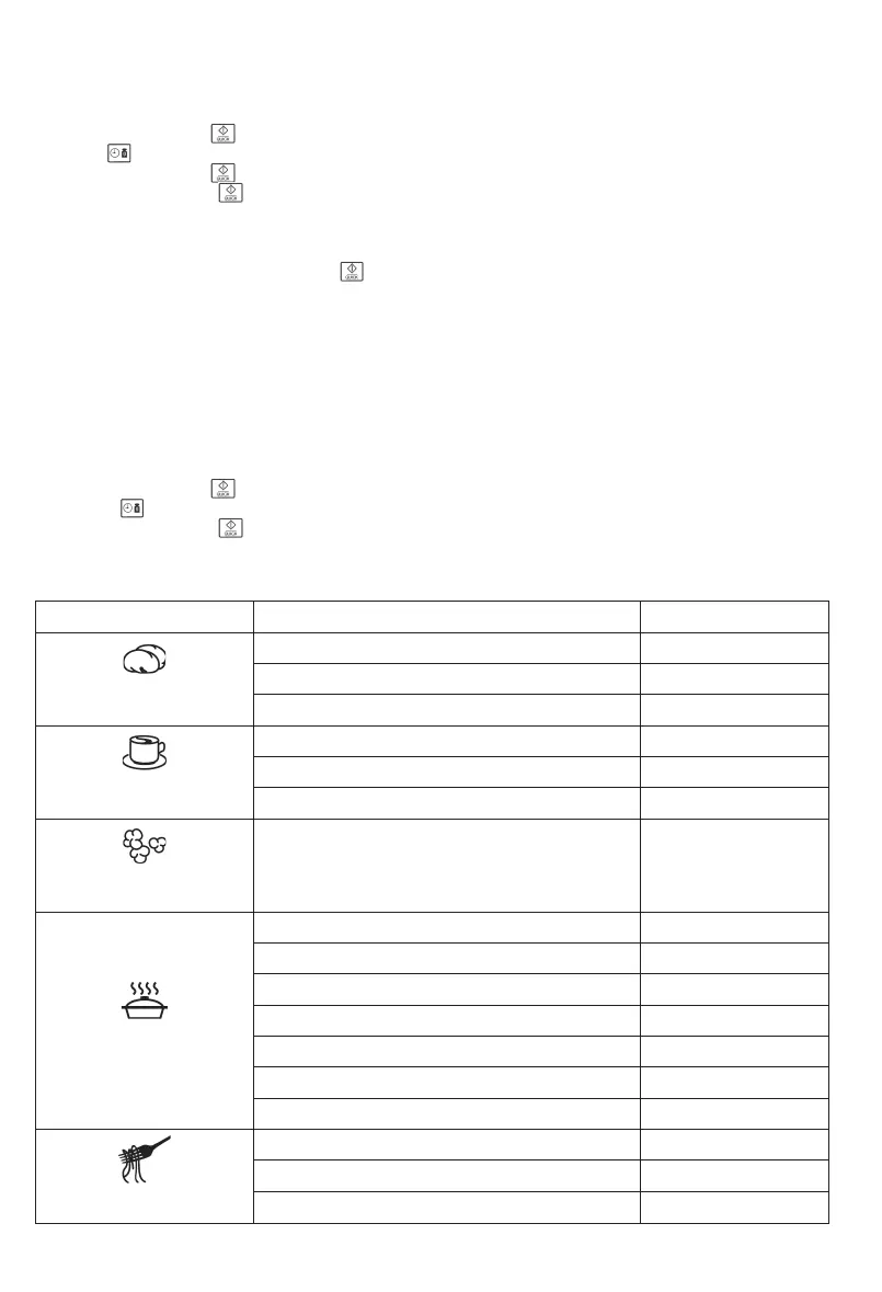 ∙ Should the food not be completely defrosted after the pre-set defrosting time has elapsed, it is advisable to limit any