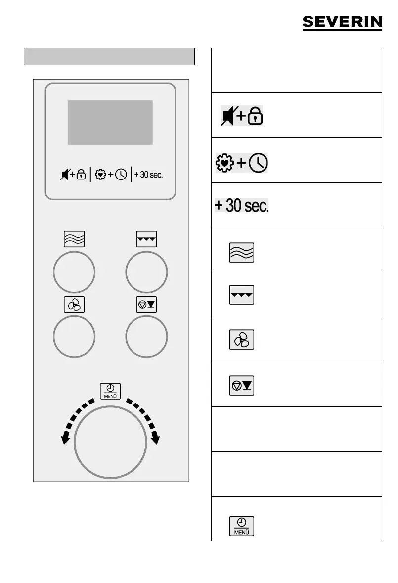 SEVERIN MW 7774 - Control Panel and Display; Control Panel Functions
