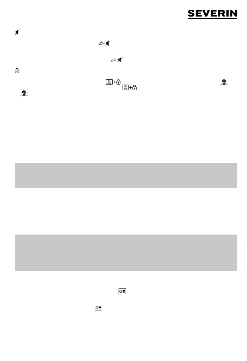 ∙ Um die Kindersicherung wieder auszuschalten, die Taste erneut ca. 3 Sekunden lang drücken. Im Display erlischt