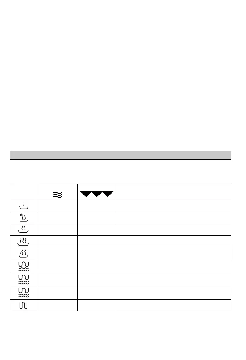 Symbol Microwave power Grill power Recommended preparation