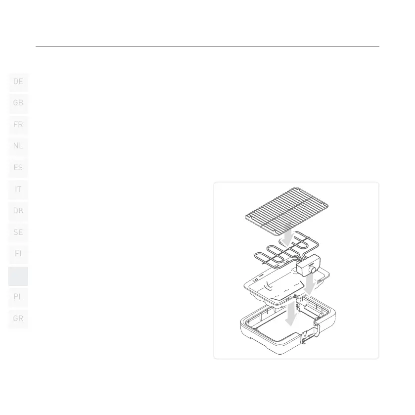 1. Inserir o tabuleiro de grelhar na caixa.