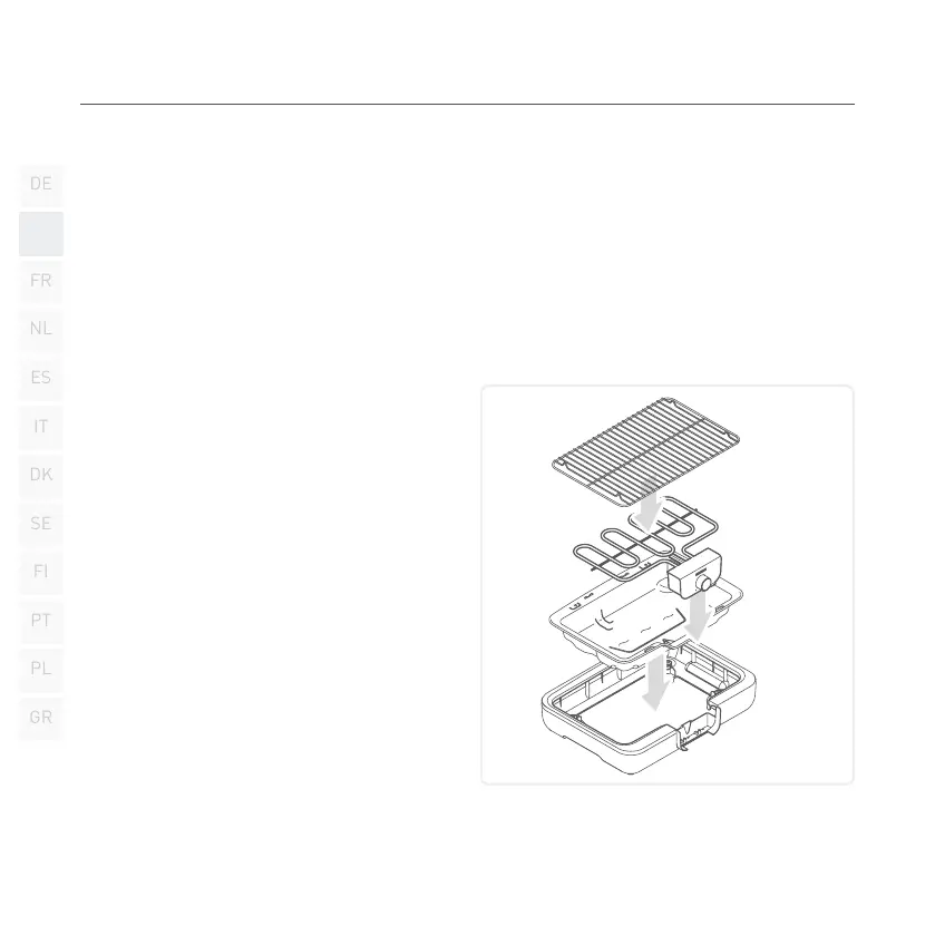 1. Clean the grill rack and grill pan with warm rinsing water.
