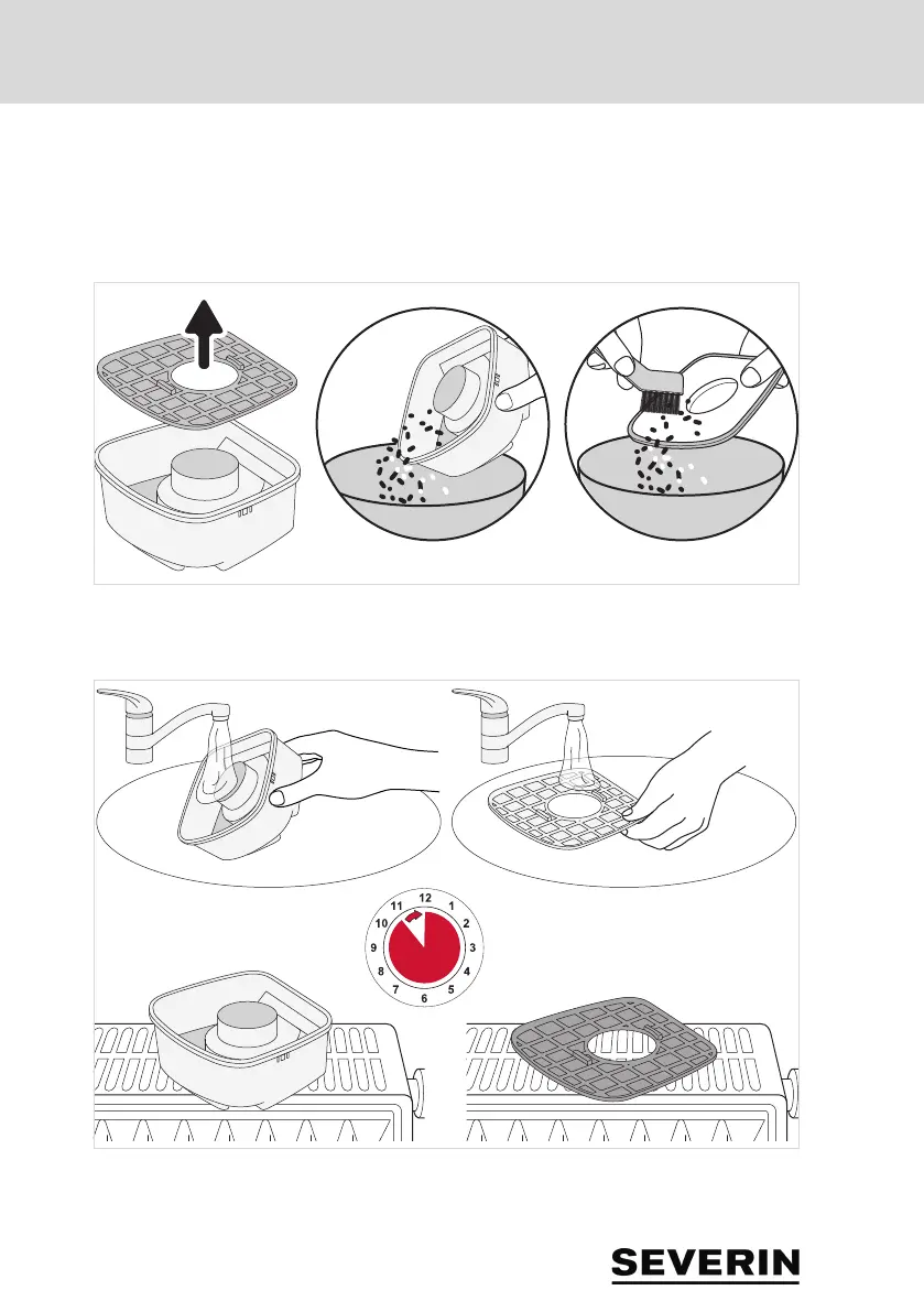 6. Videz le réservoir à poussière et le nettoyer rapidement à sec (voir figure détaillée).