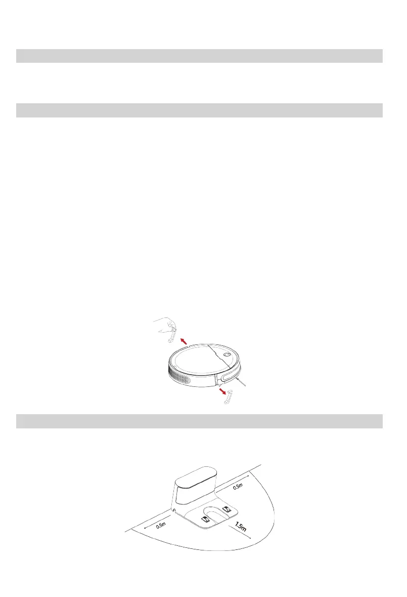 ∙ Hvis sidebørsterne er blevet bøjet under transporten, skal du følge anvisningerne i afsnittet ‚Rengøring af sidebørster‘.