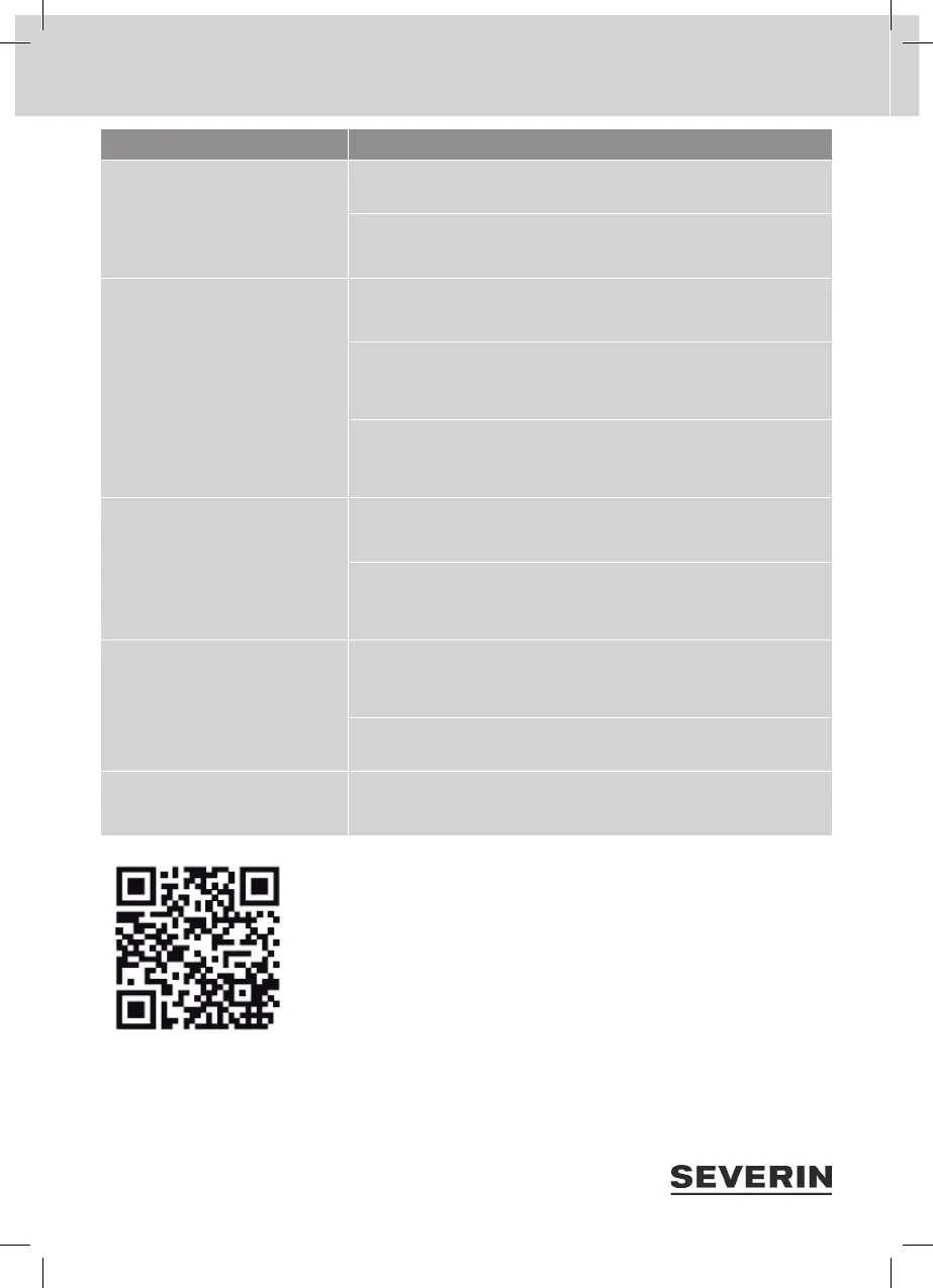 Jeśli ta tabela nie pomoże, proszę zwrócić się do naszego serwisu.
