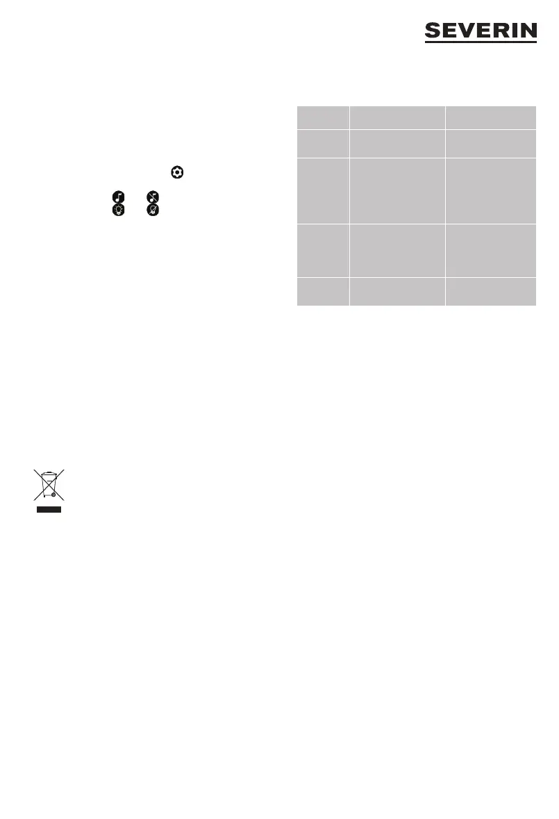 ∙ De akustiska signalerna och ljusringsfunktionen kan