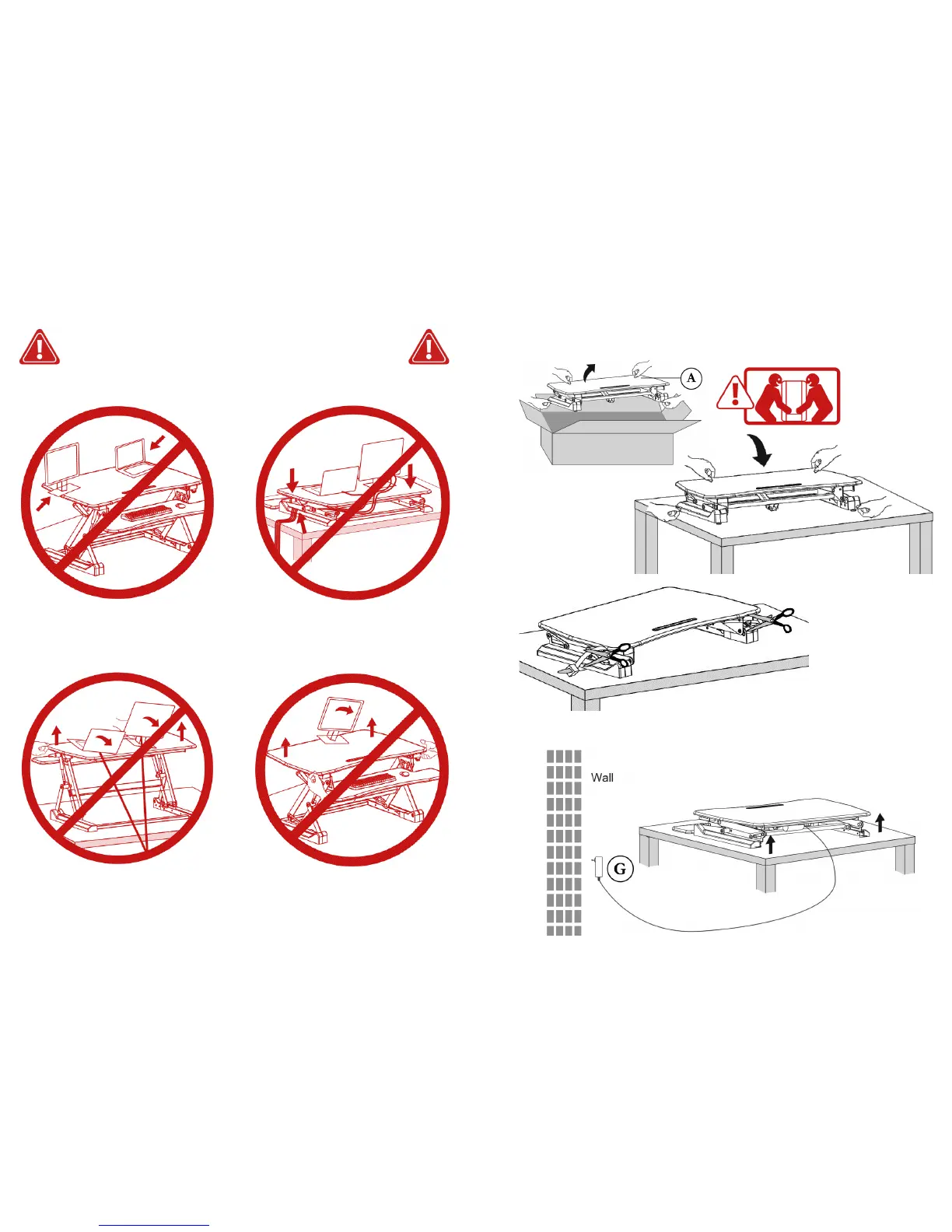 STEP 1. Remove AIRLIFT™ DESK (A) from box and set on at table. Weighs 50.7 lbs.