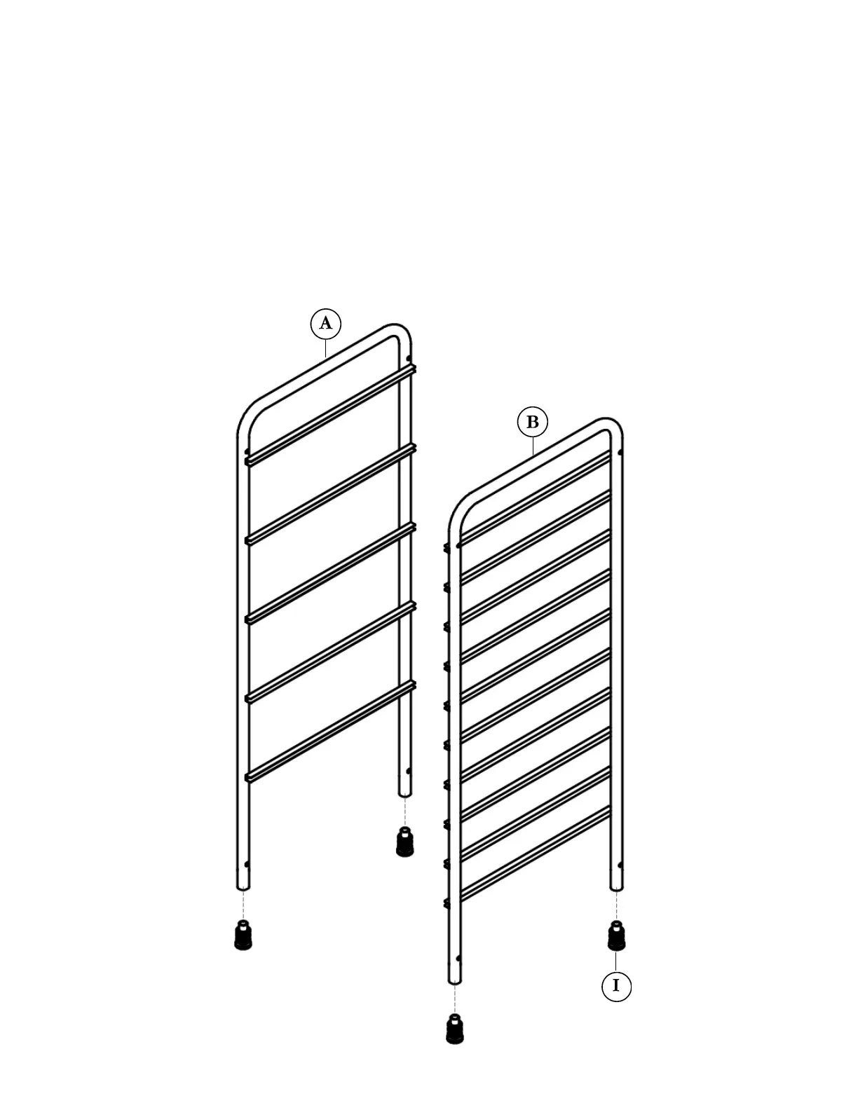 CONSEIL : Assemblez sur une surface plane. Insérez les MANCHONS (I) dans la pare inférieure des