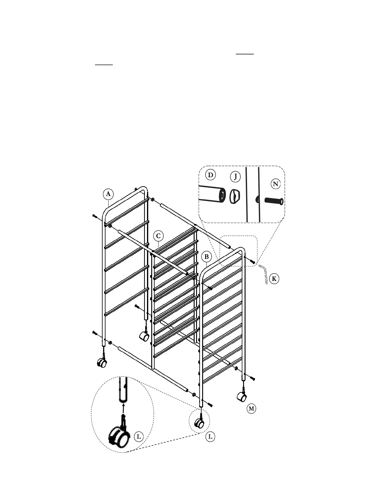 Presser les ROULETTES VERROUILLABLES (L) et les ROULETTES (M) dans les manchons installés à la 1re