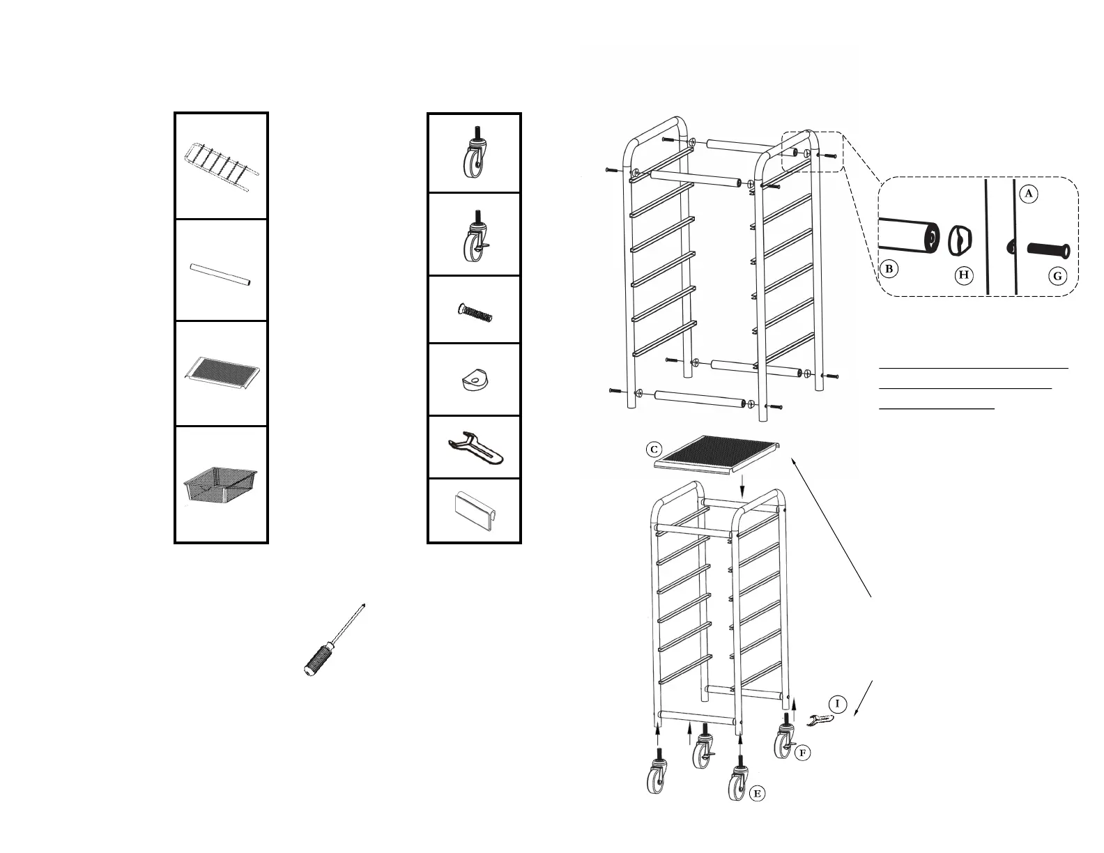 STEP 3. Screw CASTERS (E,F) into