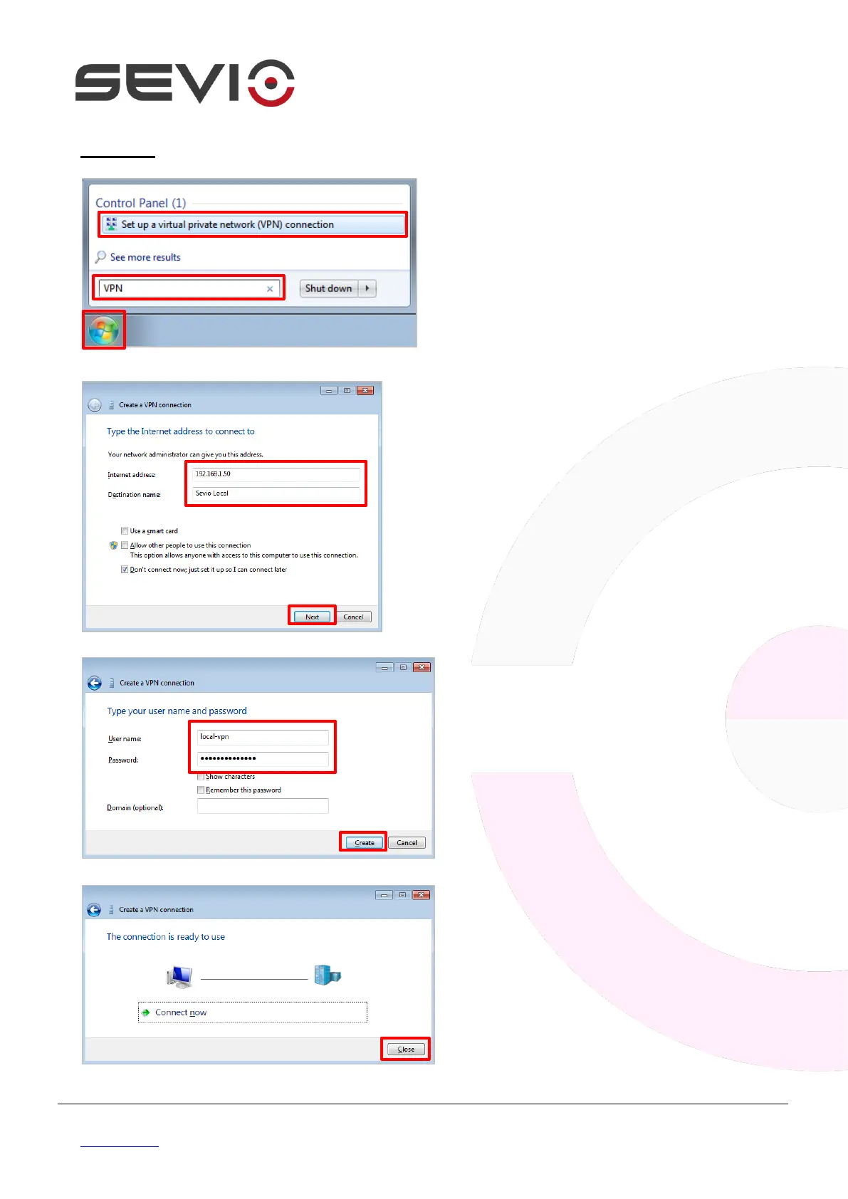 connection name (E.g. Sevio Local).
