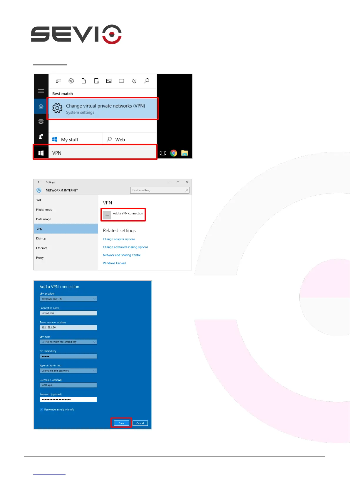 a connection name (E.g. Sevio Local).