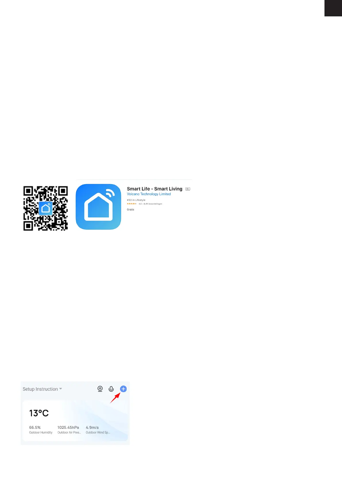 4. Open the Smart Life app and press the plus sign in the top right of the main screen to add a device: