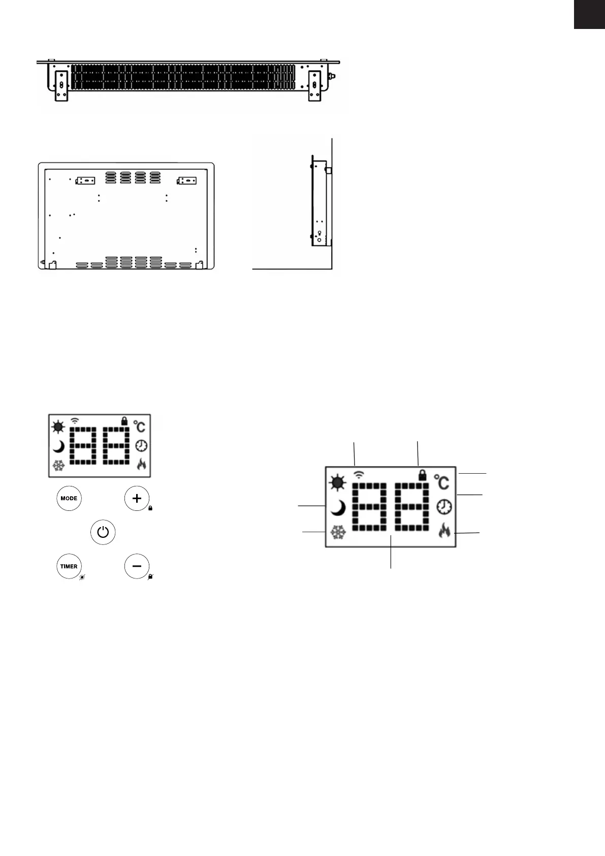 Press the ON/OFF button. You see the heating icon and the ECO mode icon. This means that the device is in ECO mode.