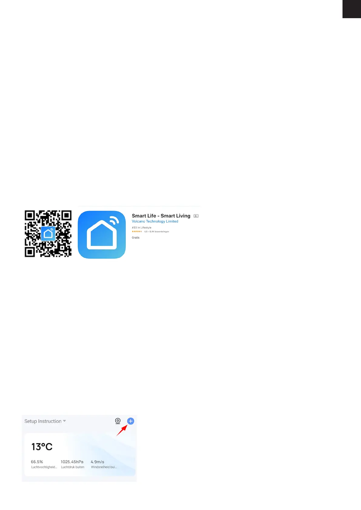 4. Open de Smart Life app en druk in rechtsboven het hoofdscherm op het plusje om een apparaat toe te voegen: