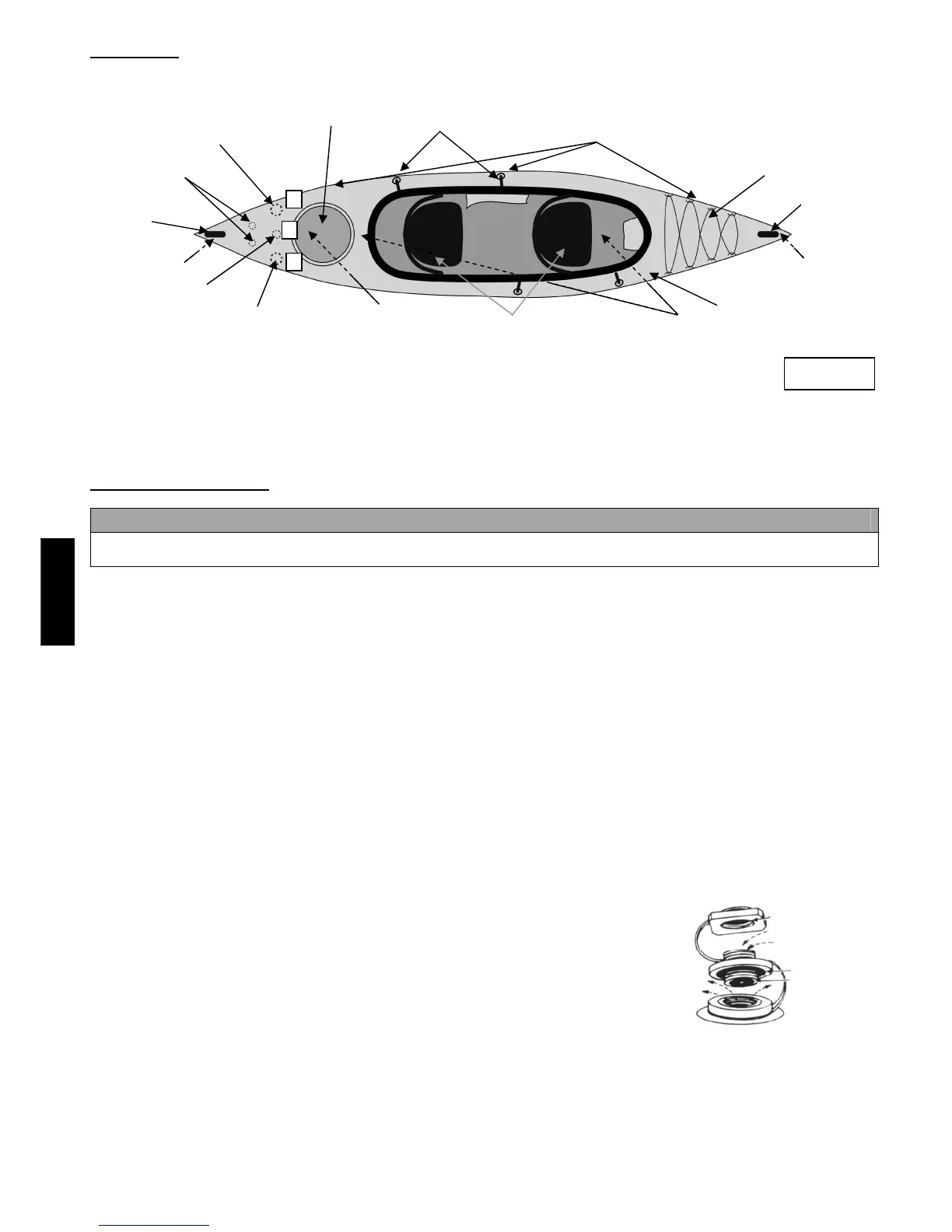 Ennen kajakin täyttöä, asenna kannen kovike ja irrotettava suuntaevä (POINTER K2).