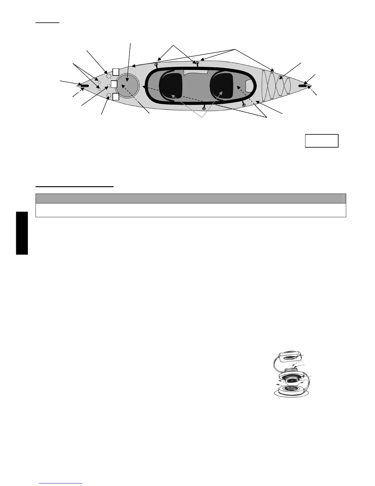 stram betrækket maksimalt for at sikre fastholdelsen. Denne operation kan ikke udføres, når først kajakken er pustet