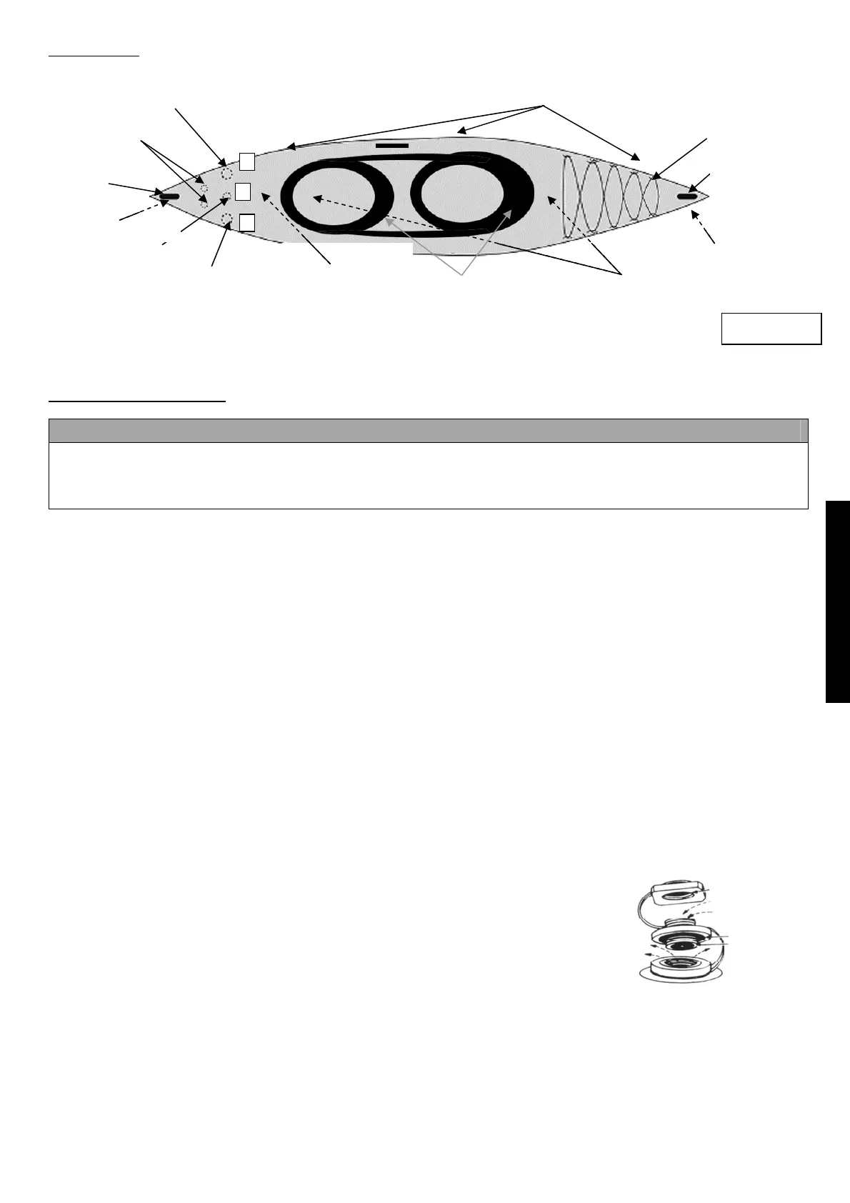 verhoging bevindt, moet naar de voorkant van de kajak wijzen; dit is belangrijk want de uiteinden zijn schuin