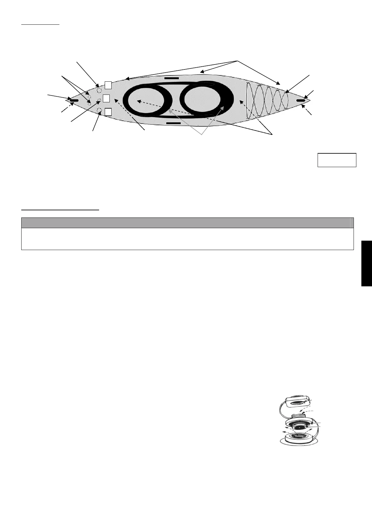 niin, että se pysyy paikallaan. Tätä toimenpidettä ei voida tehdä, kun kajakki on täytetty. Suuntaevän kaarevan