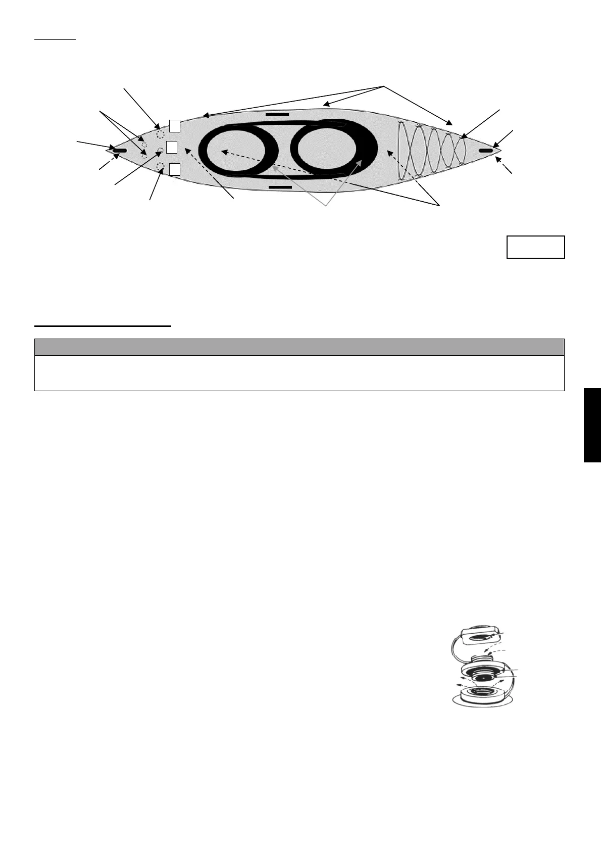 og stram betrækket maksimalt for at sikre fastholdelsen. Denne operation kan ikke udføres, når først kajakken er
