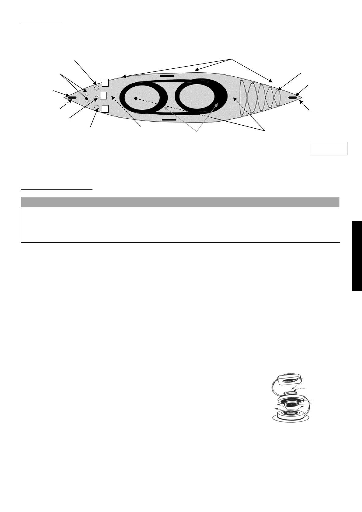 rehausse doit être dirigée vers la pointe avant du kayak ; ceci est important car les extrémités sont coupées de