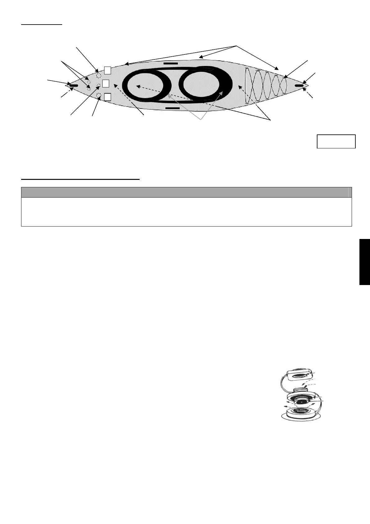 Introduceţi dispozitivul semirigid din plastic negru, care v-a fost livrat împreună cu caiacul, în locaşurile care se află sub