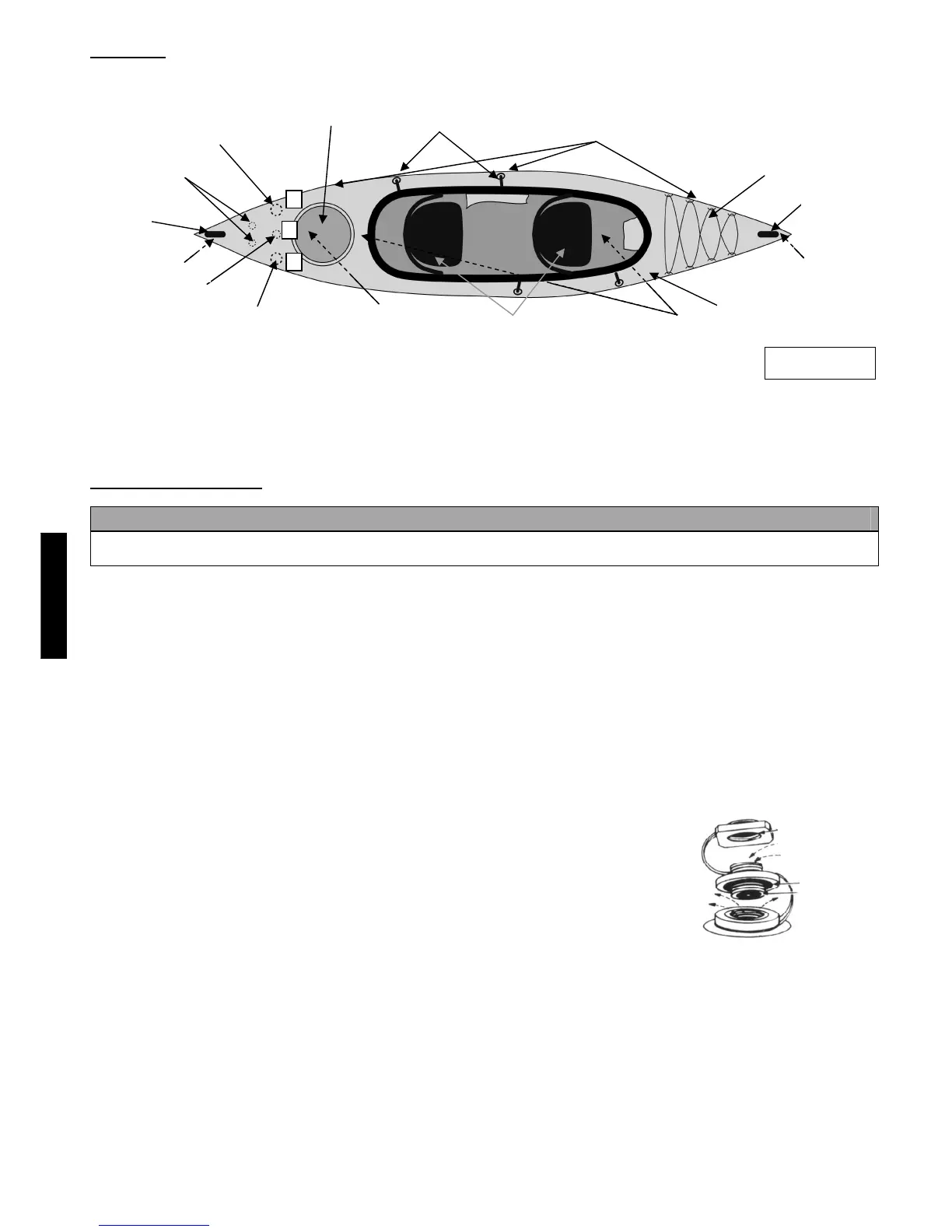 Před nafouknutím kajaku umístěte nástavec pro pružné lano a odnímatelné křidélko (POINTER K2).