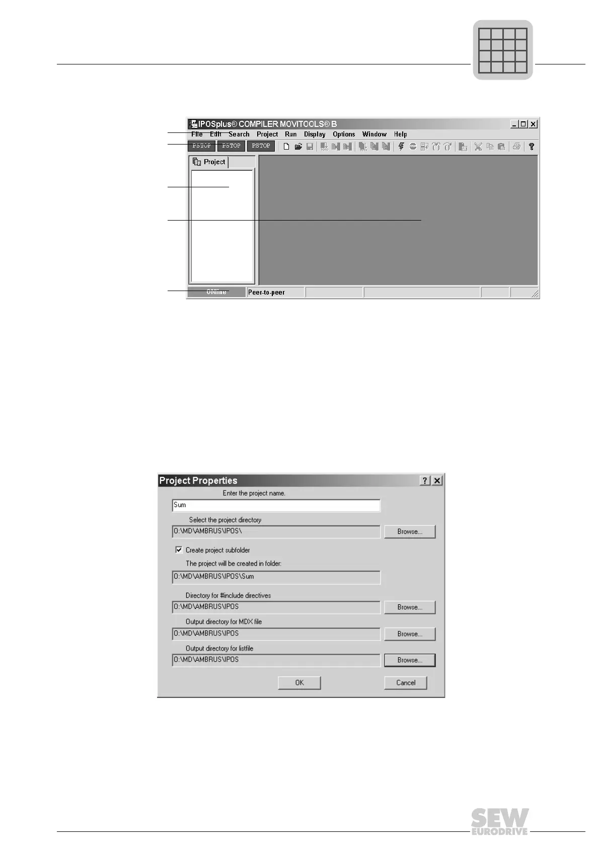 To create a new project, choose [Project]/[Create new...] from the menu bar. Use the