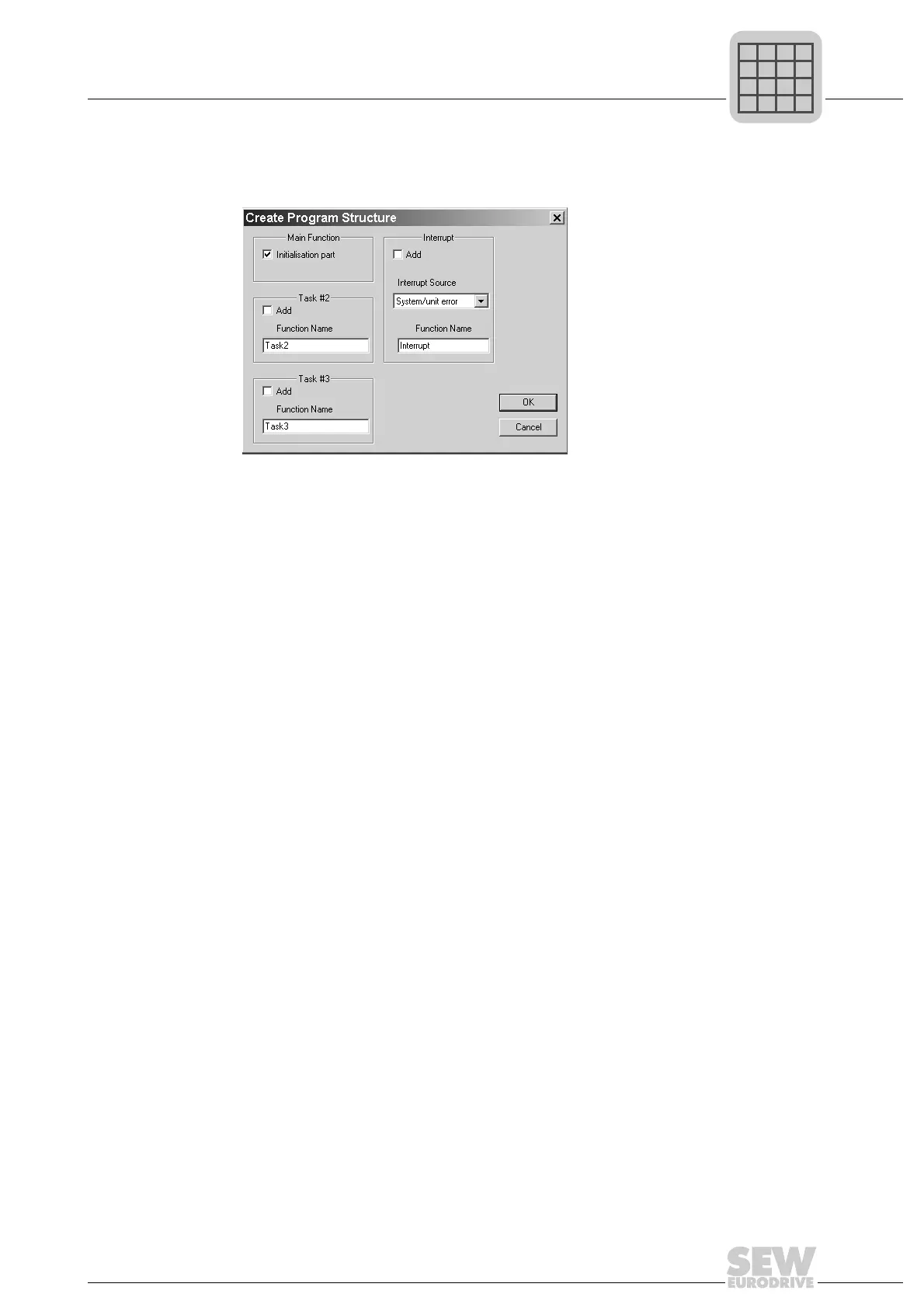 In the "main function" group, mark the "Initialization part" check box. Once you have left