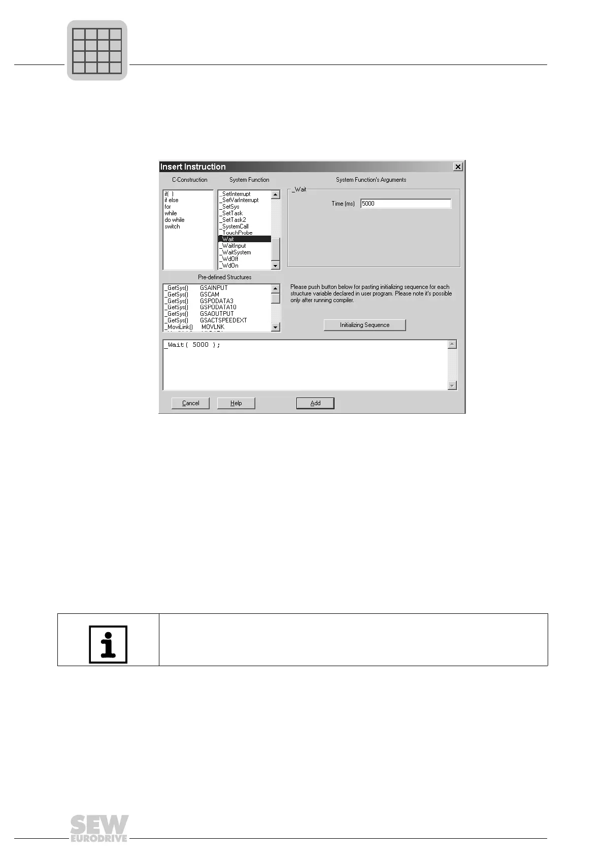 To insert the _Wait function, you must first select the _Wait function in the list of system
