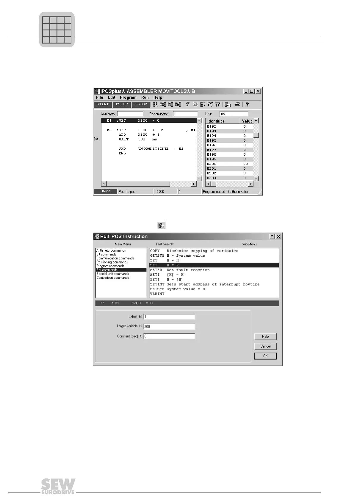 get variable and the value (constant) to which the variable should be set. Click on [OK]