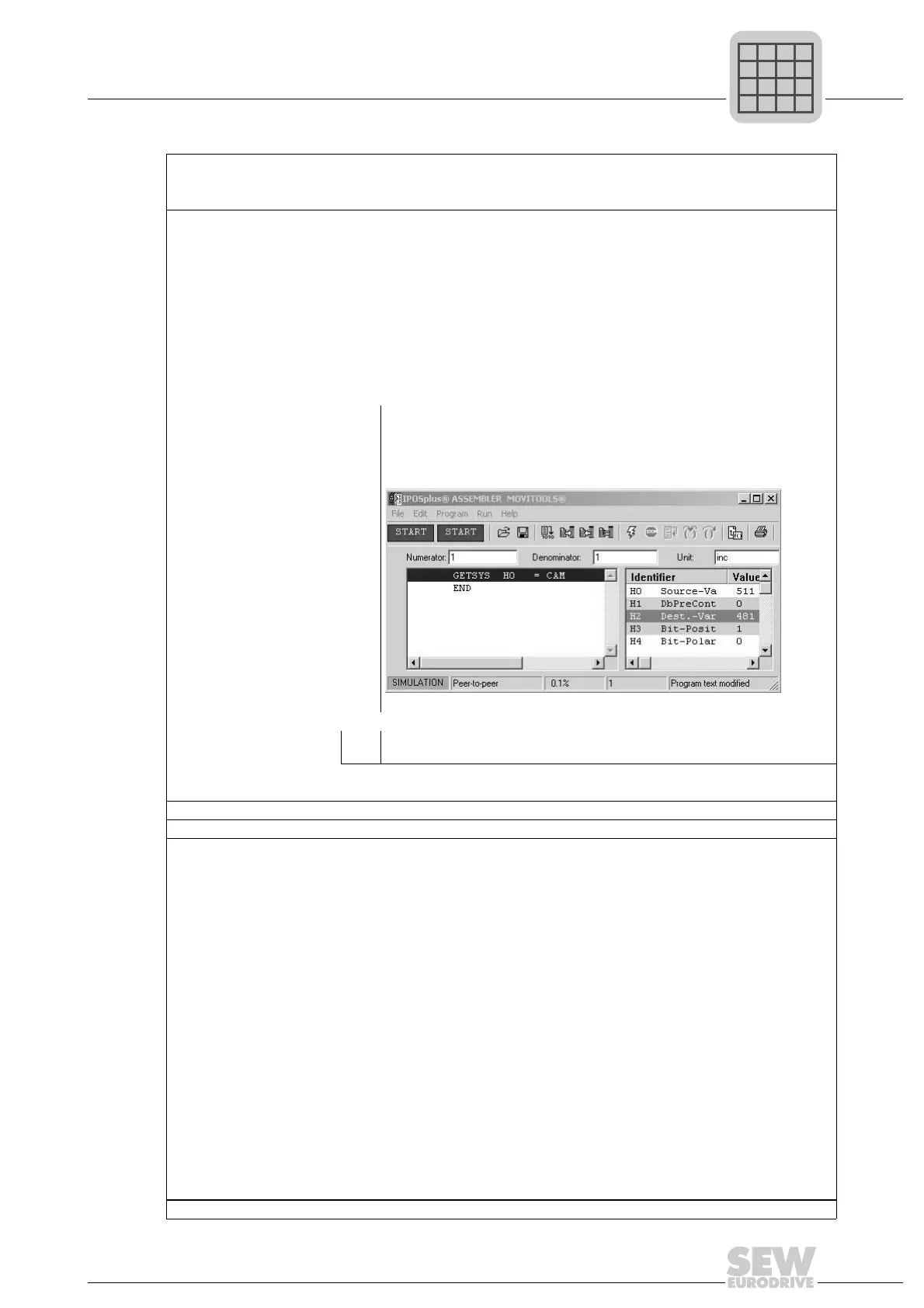 mode). The GETSYS command activates the cam controller, the cams are formed