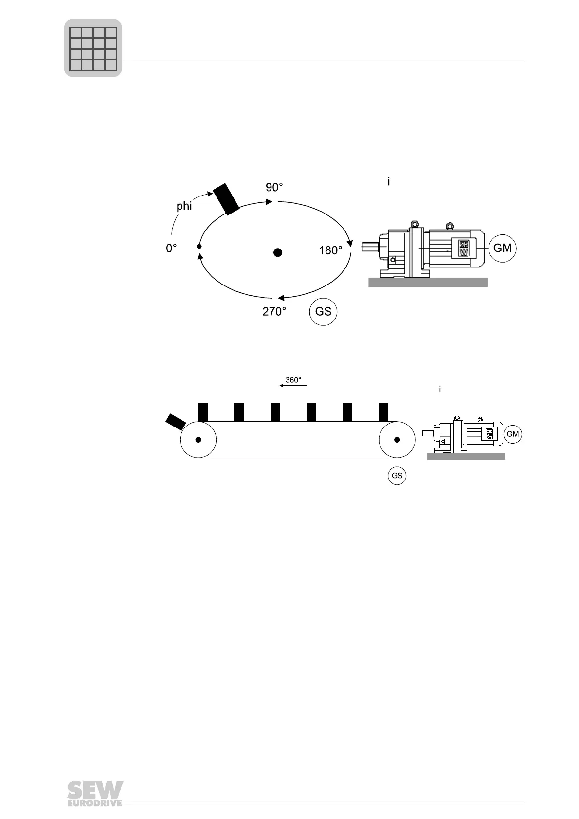 • Turntable applications with the output unit 360° correspond to one turntable rotation.