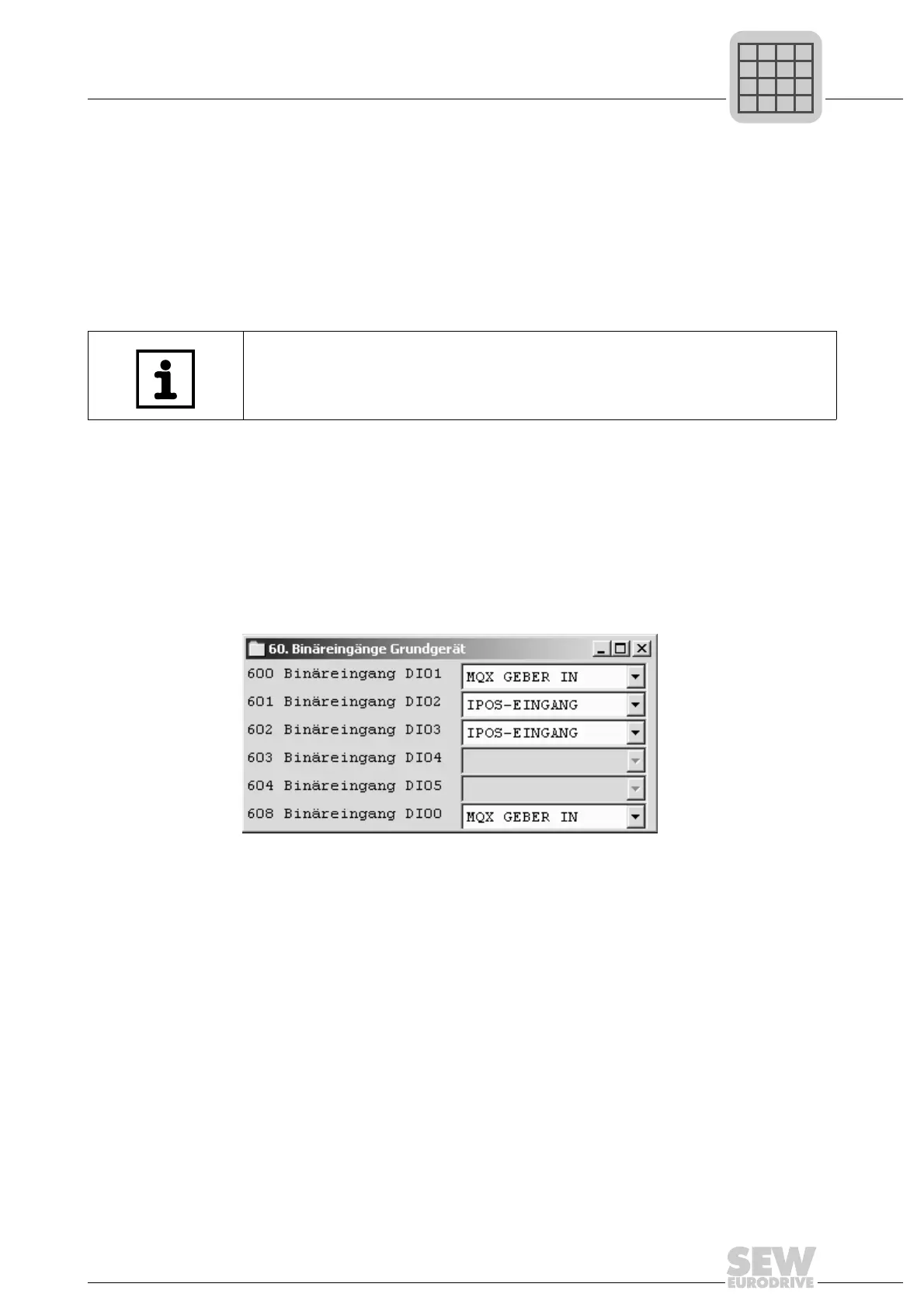 inputs DI0 and DI1 (P600 und P608) to "MQX ENCODER IN". The parameter settings