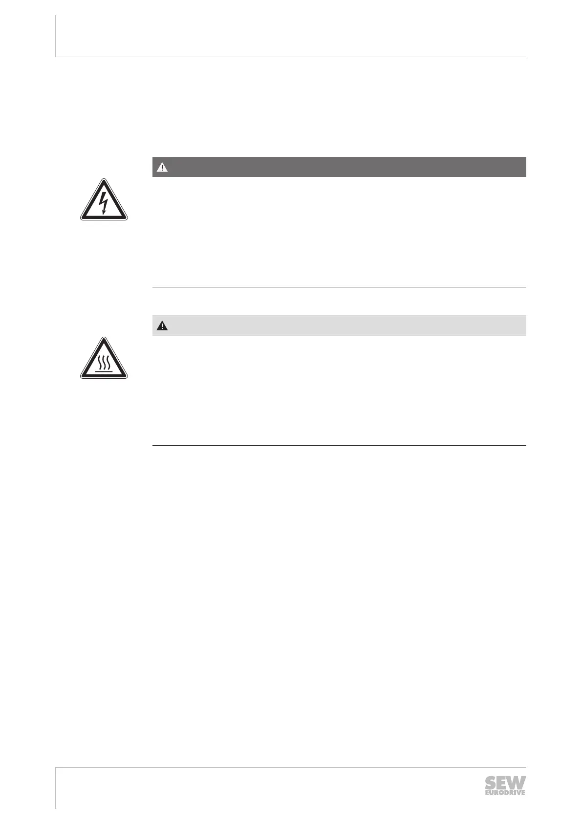 The surfaces of the braking resistors will reach temperatures of up to 250 °C when