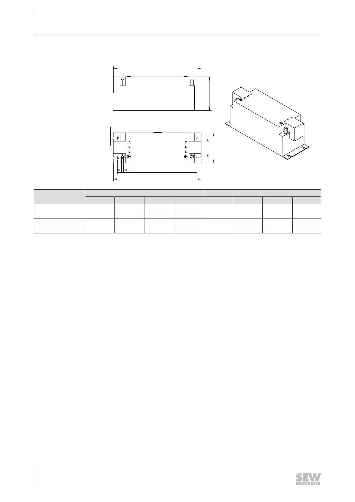 Line filter Main dimensions in mm Mounting dimensions in mm