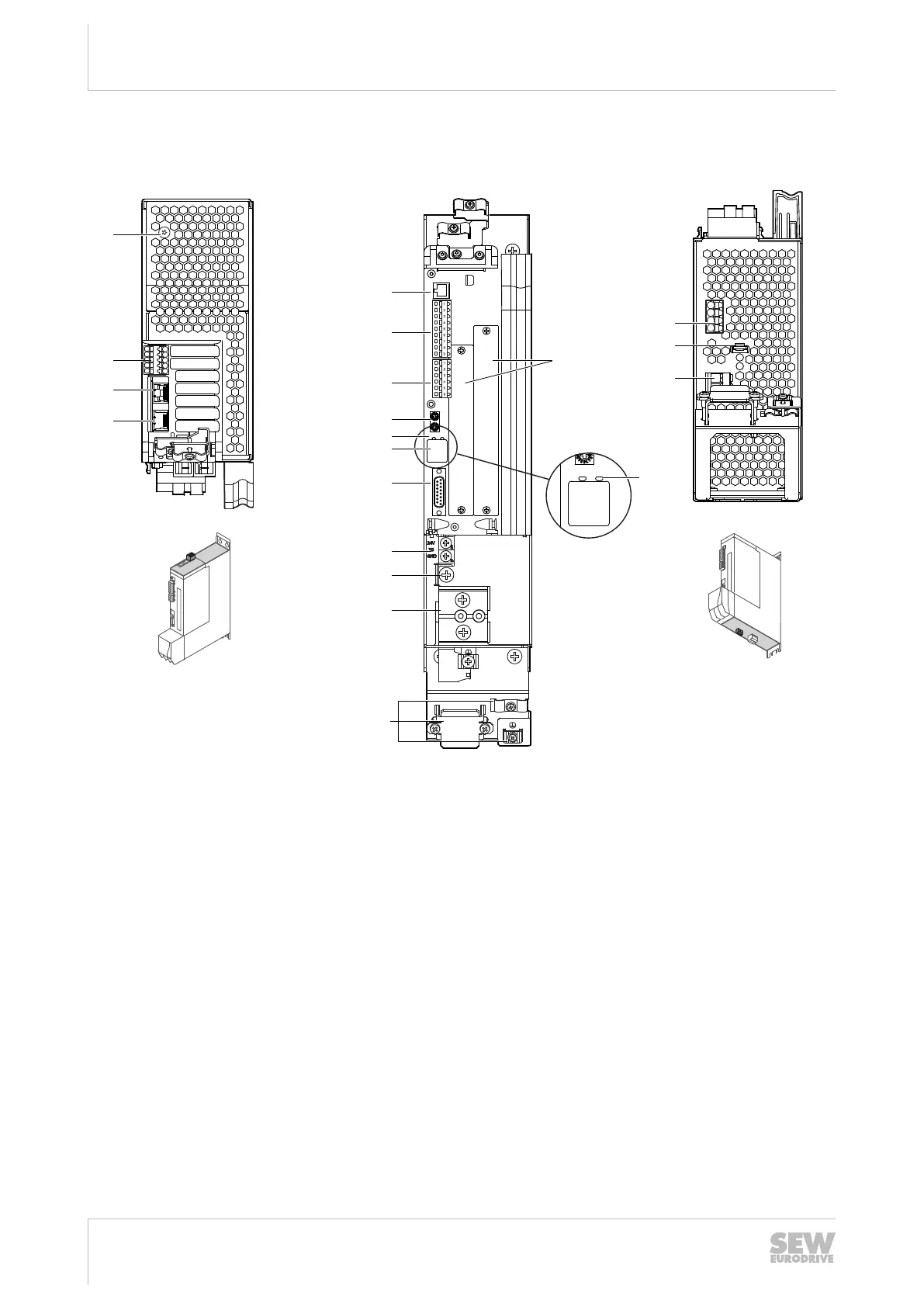 [3] X30 OUT: System bus [7] X21: Digital outputs [19] X2: Motor connection