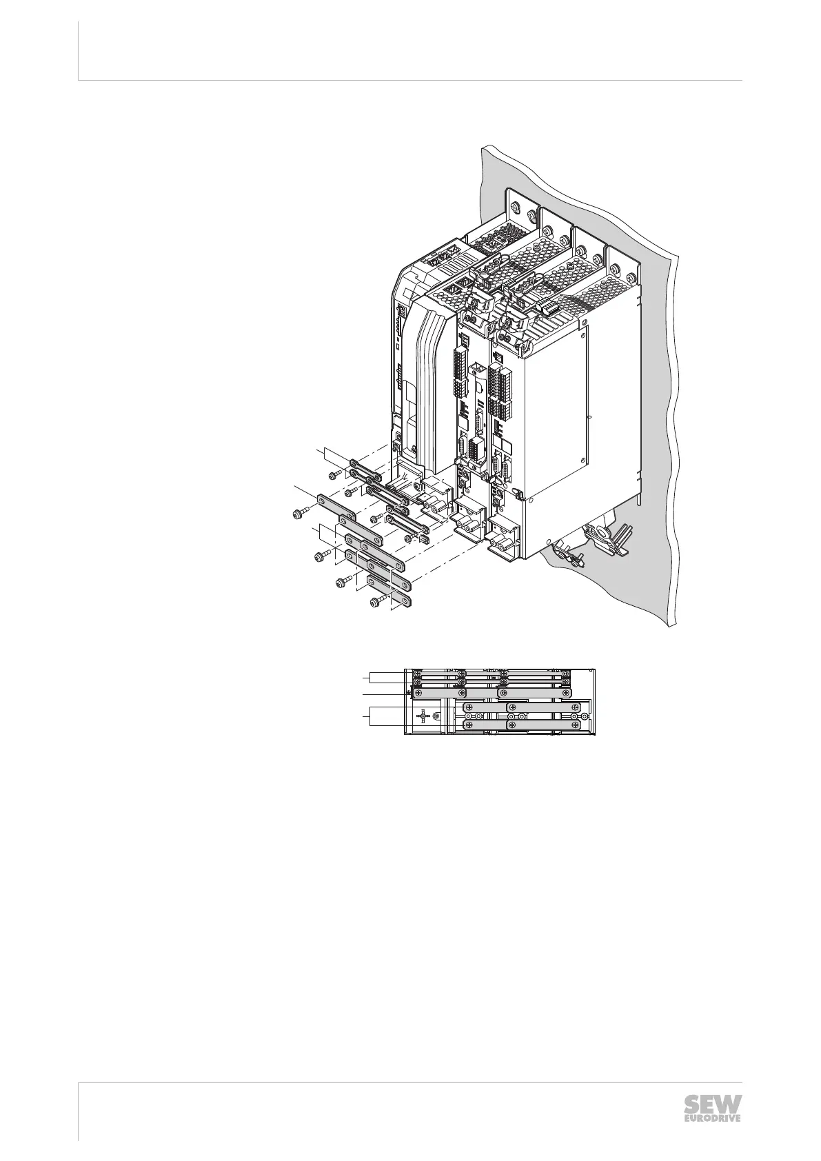 3. Install the busbar [3] for the DC link connection X4 as shown in the figure. Tighten