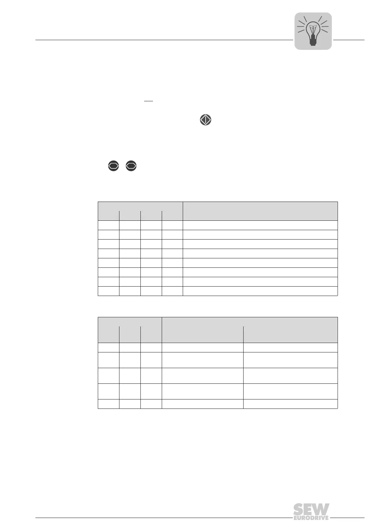 The following table shows control bits and the functions of the drive.
