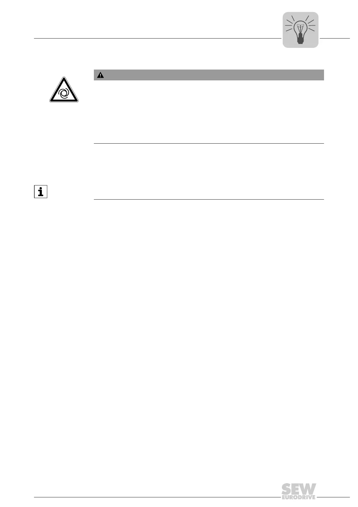 • During deactivation, observe a sufficient safety distance to all parts driven by the