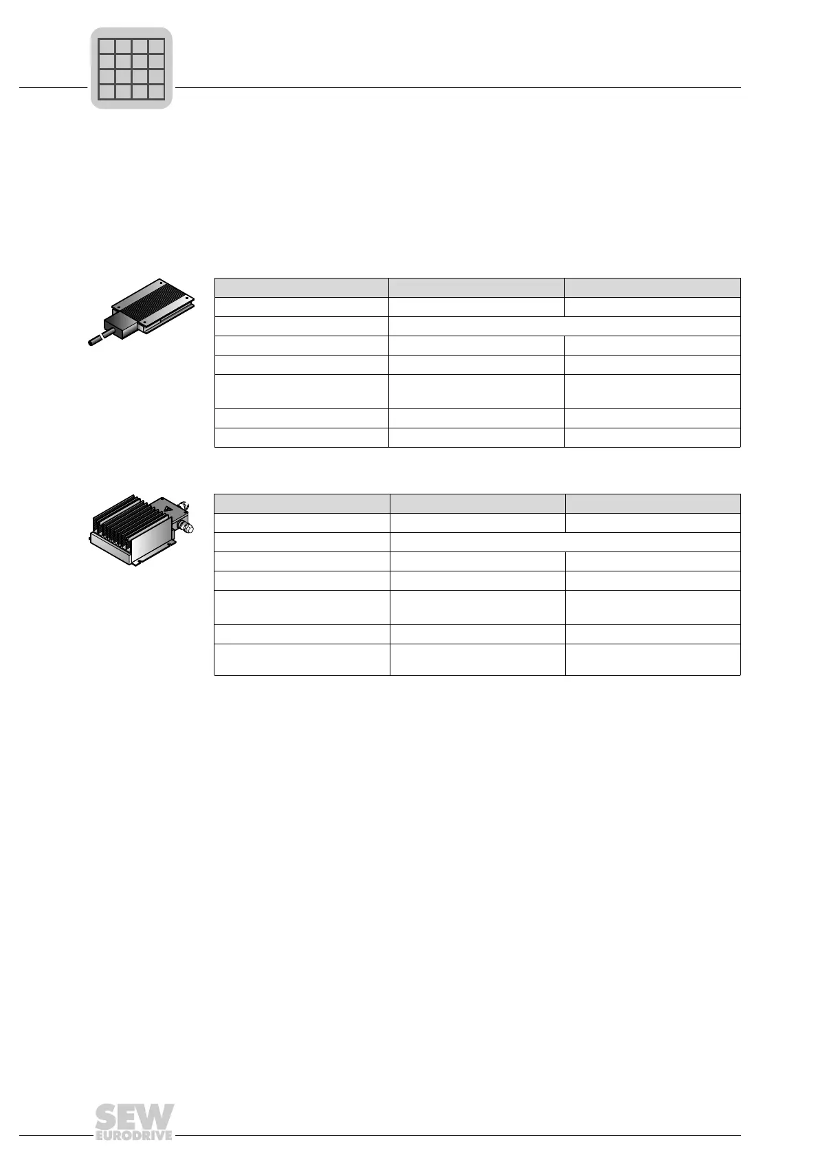 The following tables show the external braking resistors that are available for