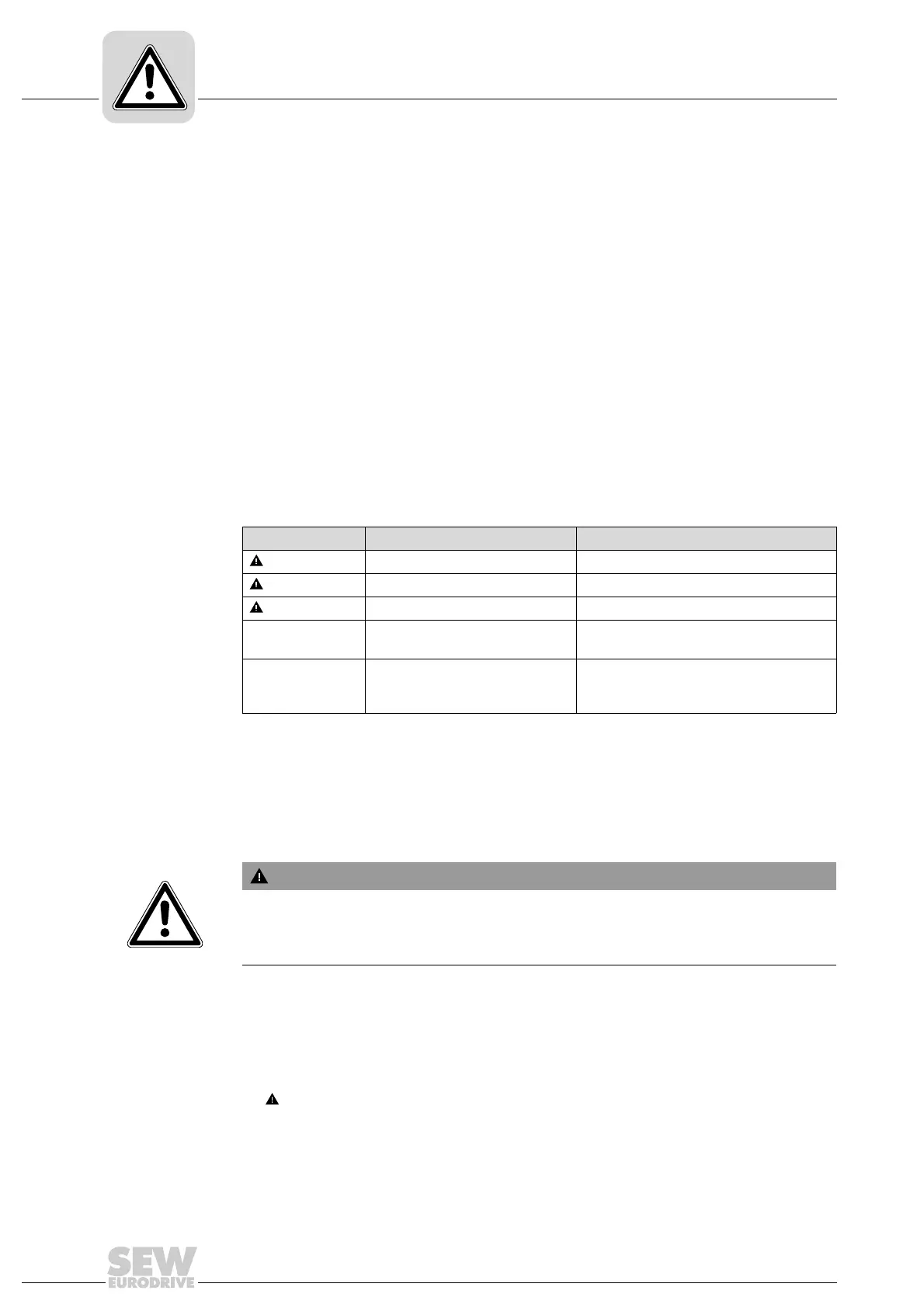 WARNING Possible dangerous situation Severe or fatal injuries