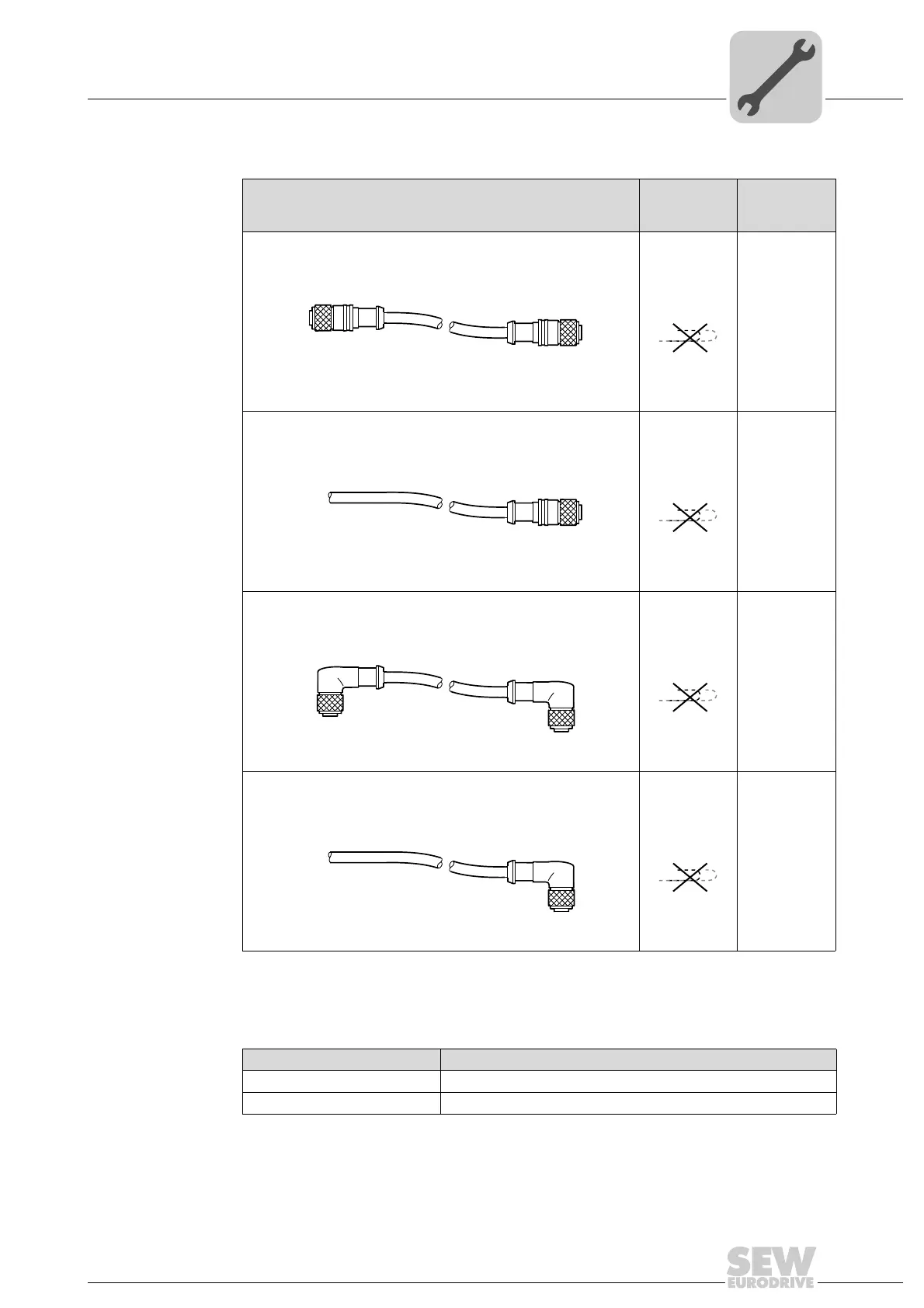 The following table provides an overview of the cables available for this connection: