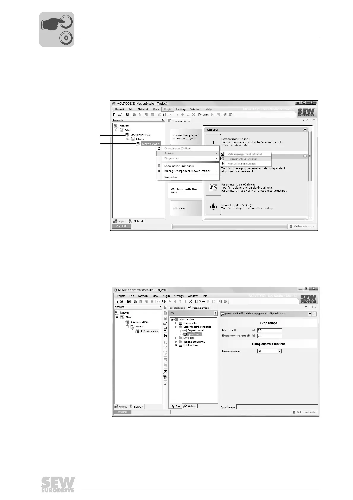 3. Select a tool (e.g. "Parameter tree") to configure the unit.
