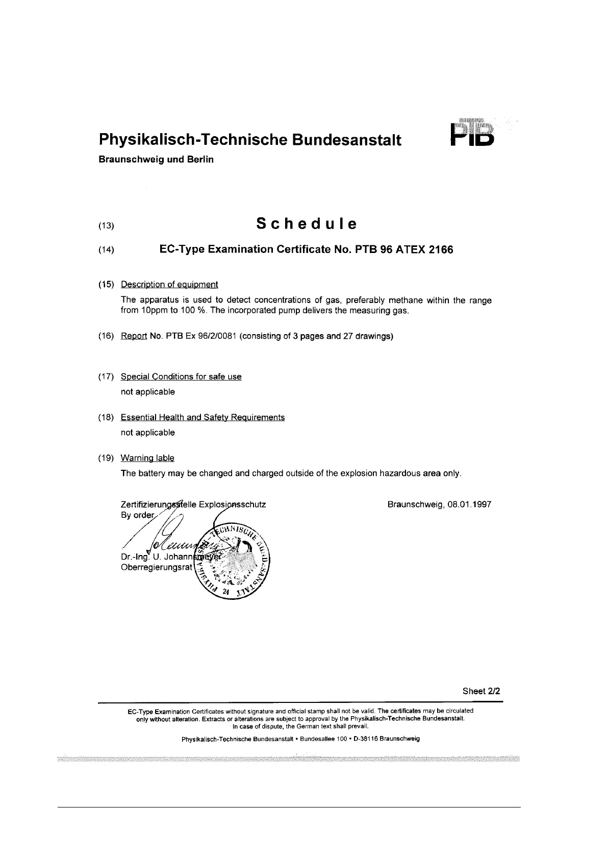 sewerin EX-TEC SR5 - Certificate Schedule and Conditions; Battery Handling Warning