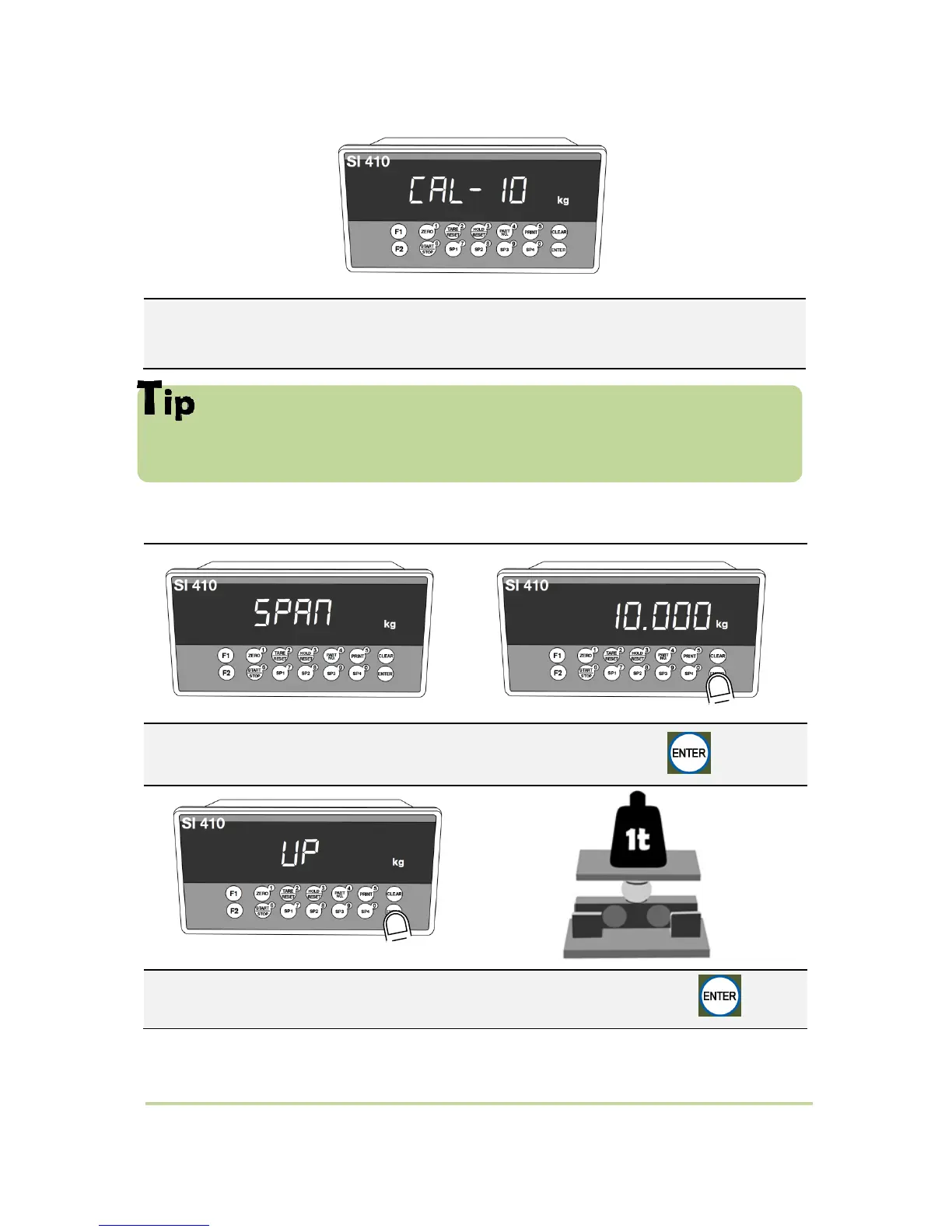 If UP is displayed, please load Test Weight on the scale part and press key.